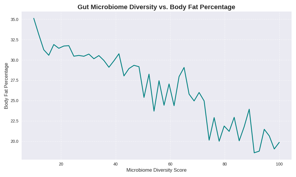 📊 Graph: Gut Microbiome Diversity vs. Body Fat Percentage