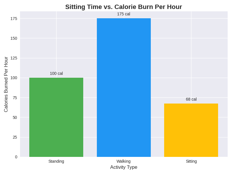 This chart makes it crystal clear: even small shifts in movement throughout your workday can lead to meaningful calorie burn. Perfect for reinforcing your blog’s message to desk workers—you don’t need a gym, just a strategy.