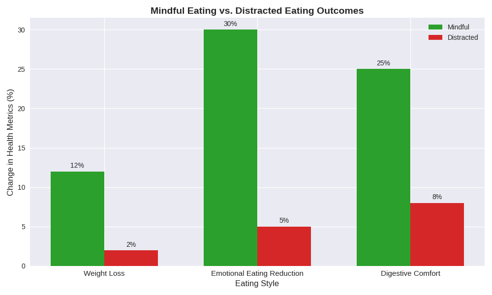 📊 Graph: Mindful Eating vs. Distracted Eating Outcomes