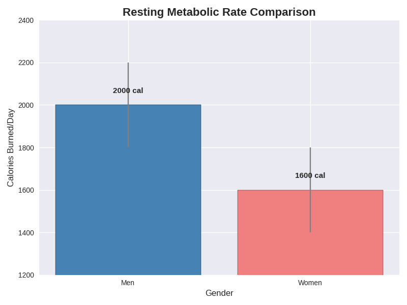 💡 Why It Matters: This graph reinforces a key point from your blog post—men generally burn more calories at rest due to higher muscle mass, while women may need more strategic nutrition and movement to match metabolic output.